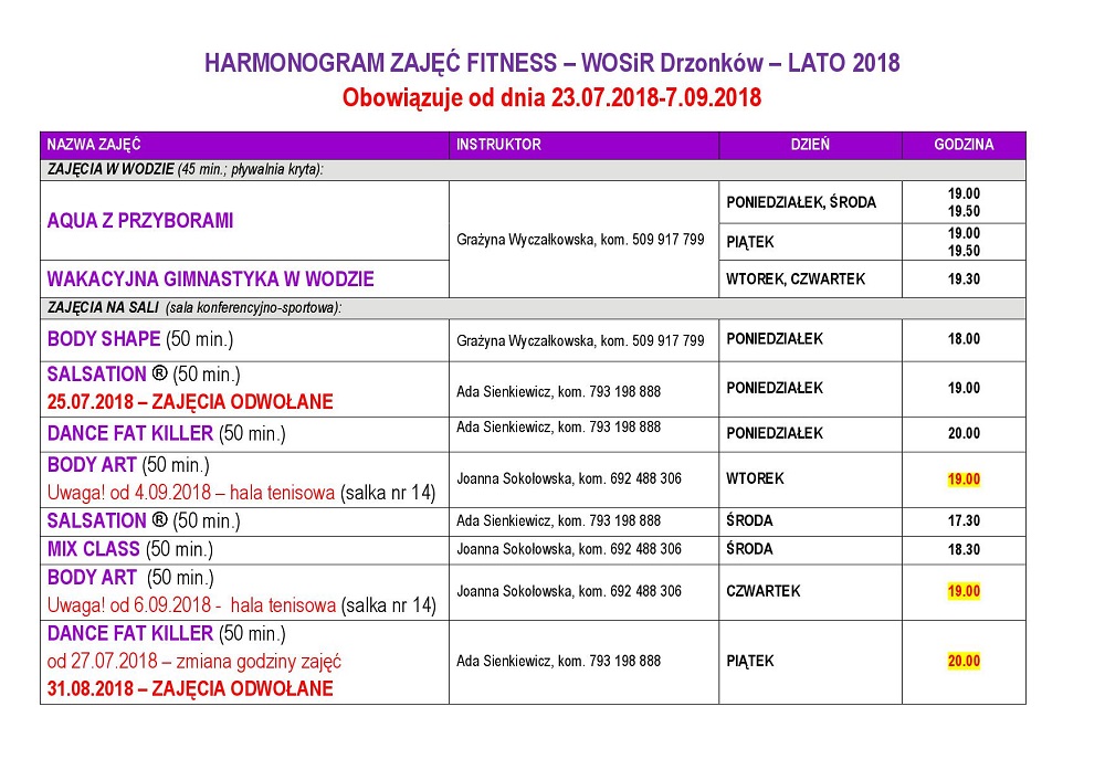 Uprzejmie informujemy, że w harmonogranie fitness nastąpią zmiany.
