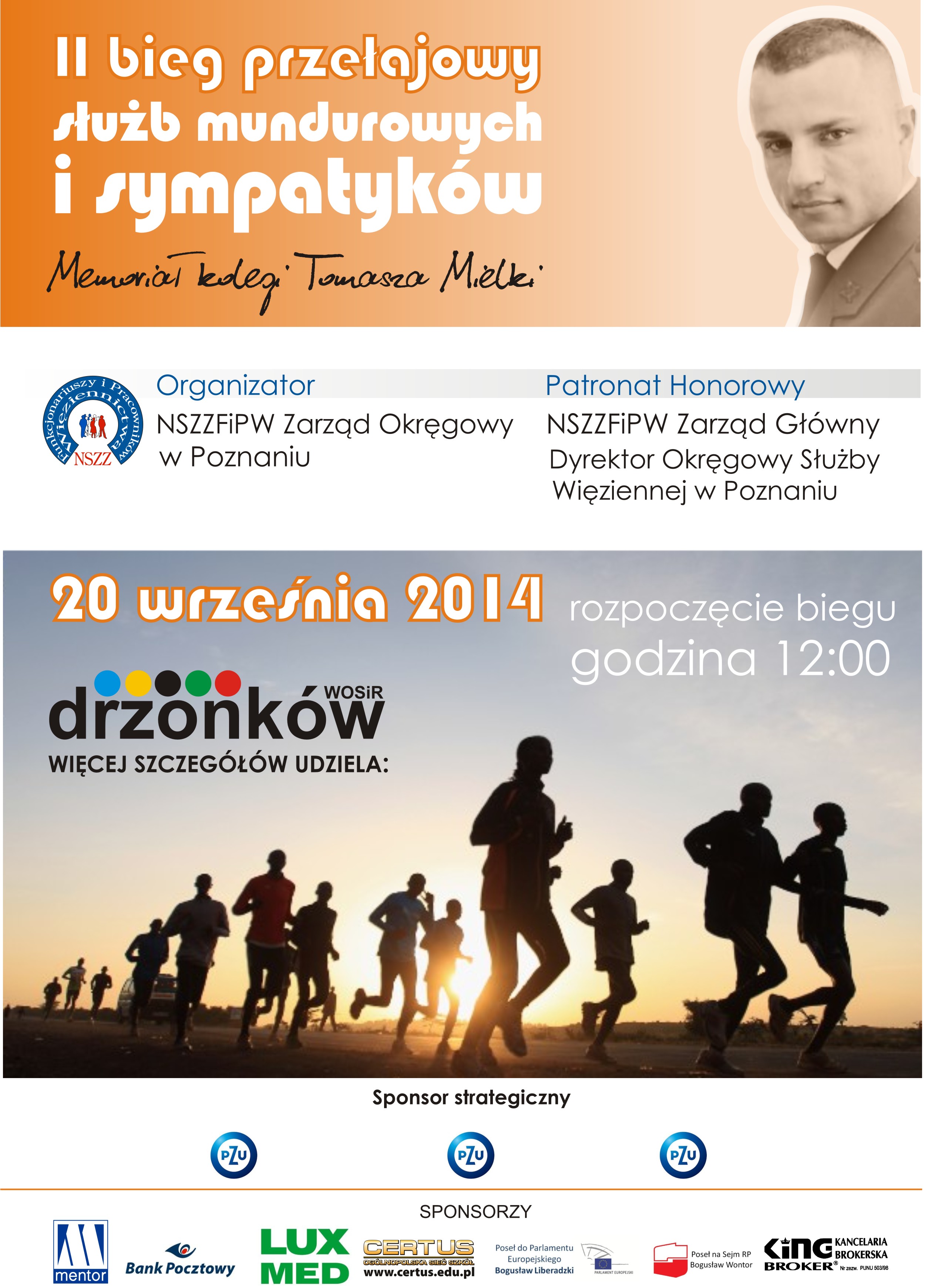 Zarząd Okręgowy NSZZF i PW w Poznaniu zaprasza do wzięcia udziału w II Biegu Przełajowym będącym „Memoriałem kolegi Tomasza Mielko”, który odbędzie się 20 września 2014 roku, o godz. 12:00. Start i meta na terenie ośrodka WOSiR Drzonków, ul. Olimpijska 20.