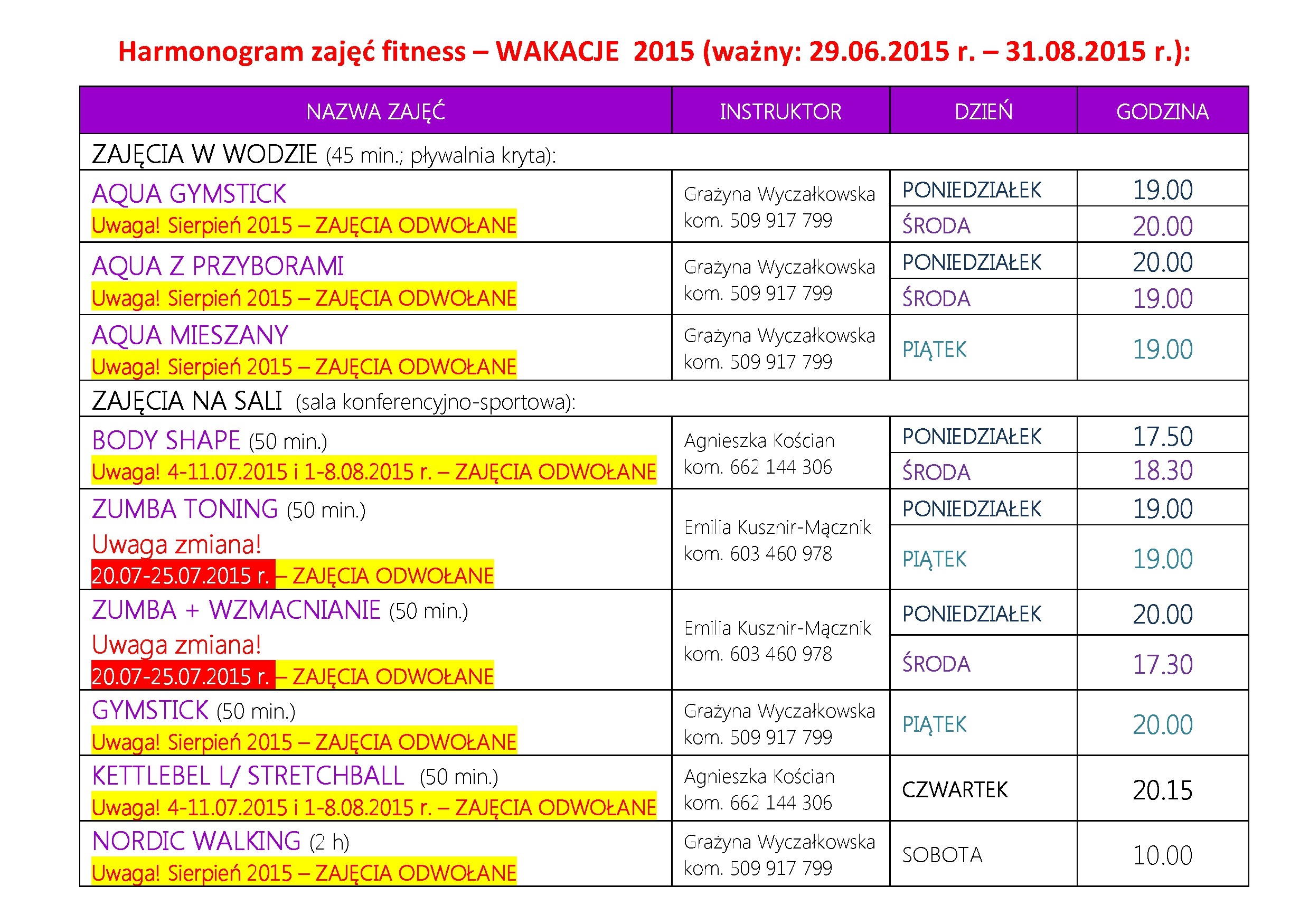 Zobacz harmonogram zajęć fitness w okresie wakacyjnym i dołącz do nas na zajęcia fitness.