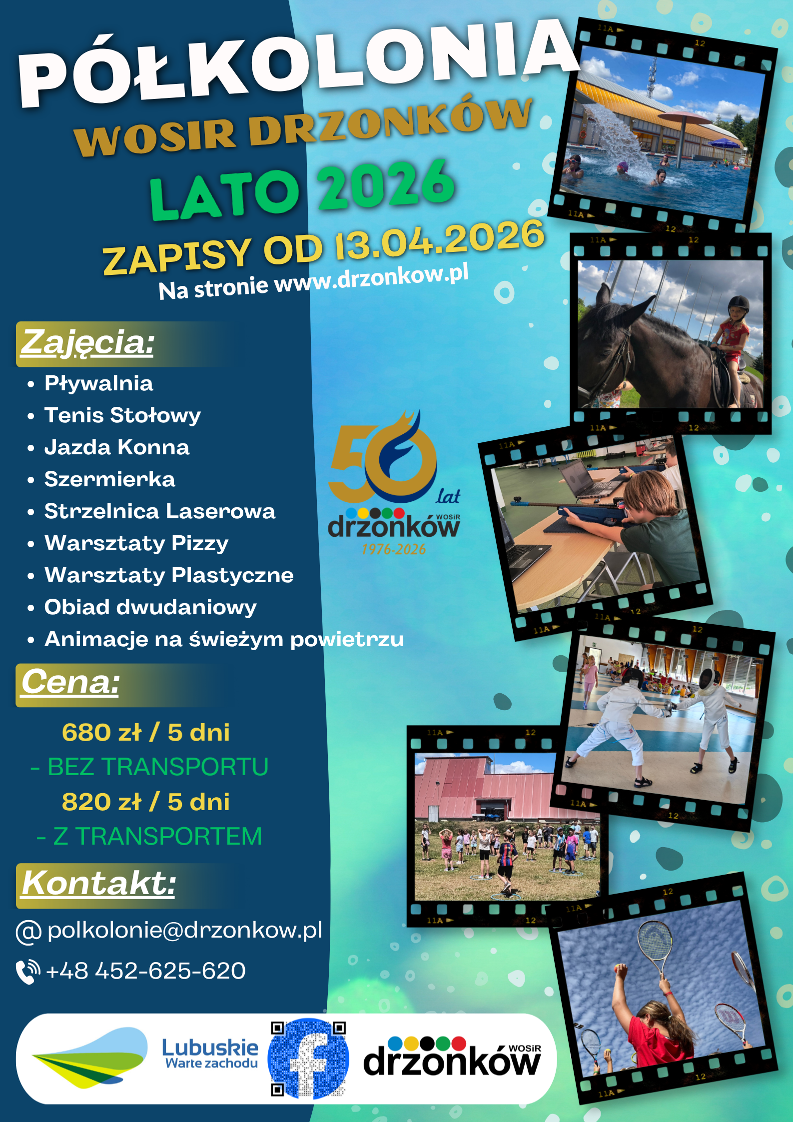 Drzonków to miejsce, gdzie pasja spotyka się ze sportem... Skorzystaj z jedynej tak urozmaiconej oferty ferii w mieście – pełnej atrakcji, uśmiechu i pozytywnej energii!
