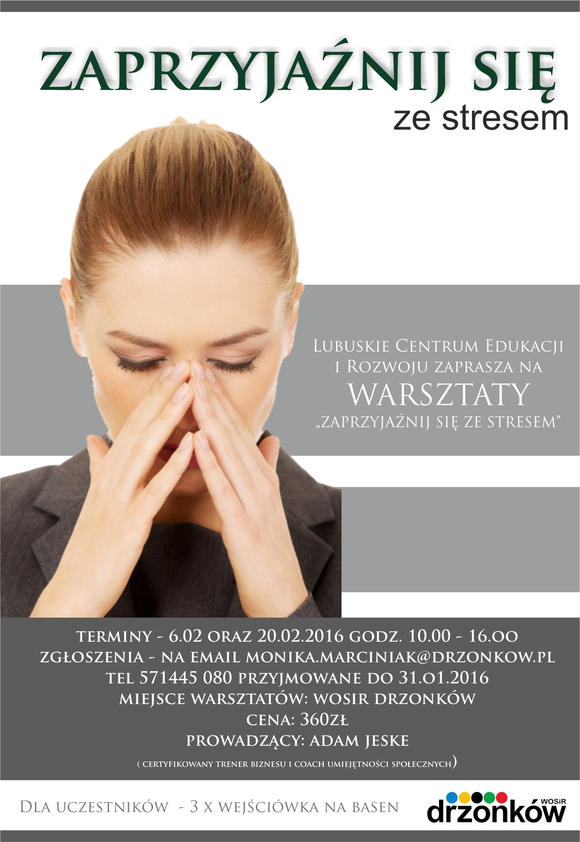 Lubuskie Centrum Edukacji i Rozwoju przy WOSiR w Drzonkowie zaprasza do udziału w otwartym warsztacie „Zaprzyjaźnij się ze stresem”