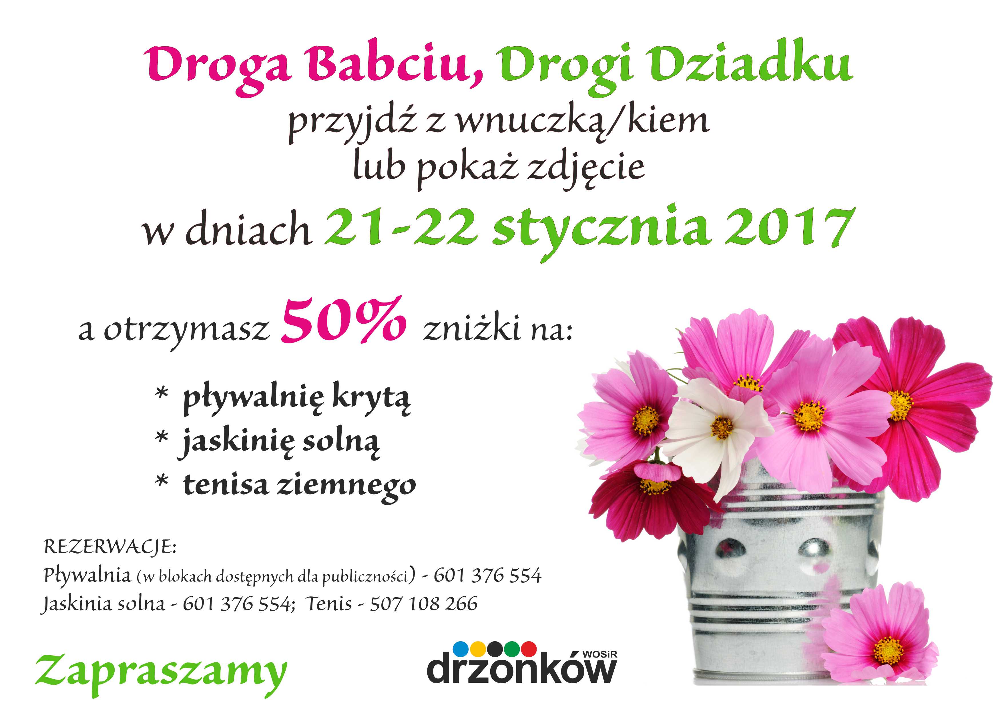 Serdecznie zapraszamy BABCIE i DZIADKÓW do świętowania z Nami! W dniach 21-22 stycznia oferujemy dla wszystkich dziadków -50% zniżki.