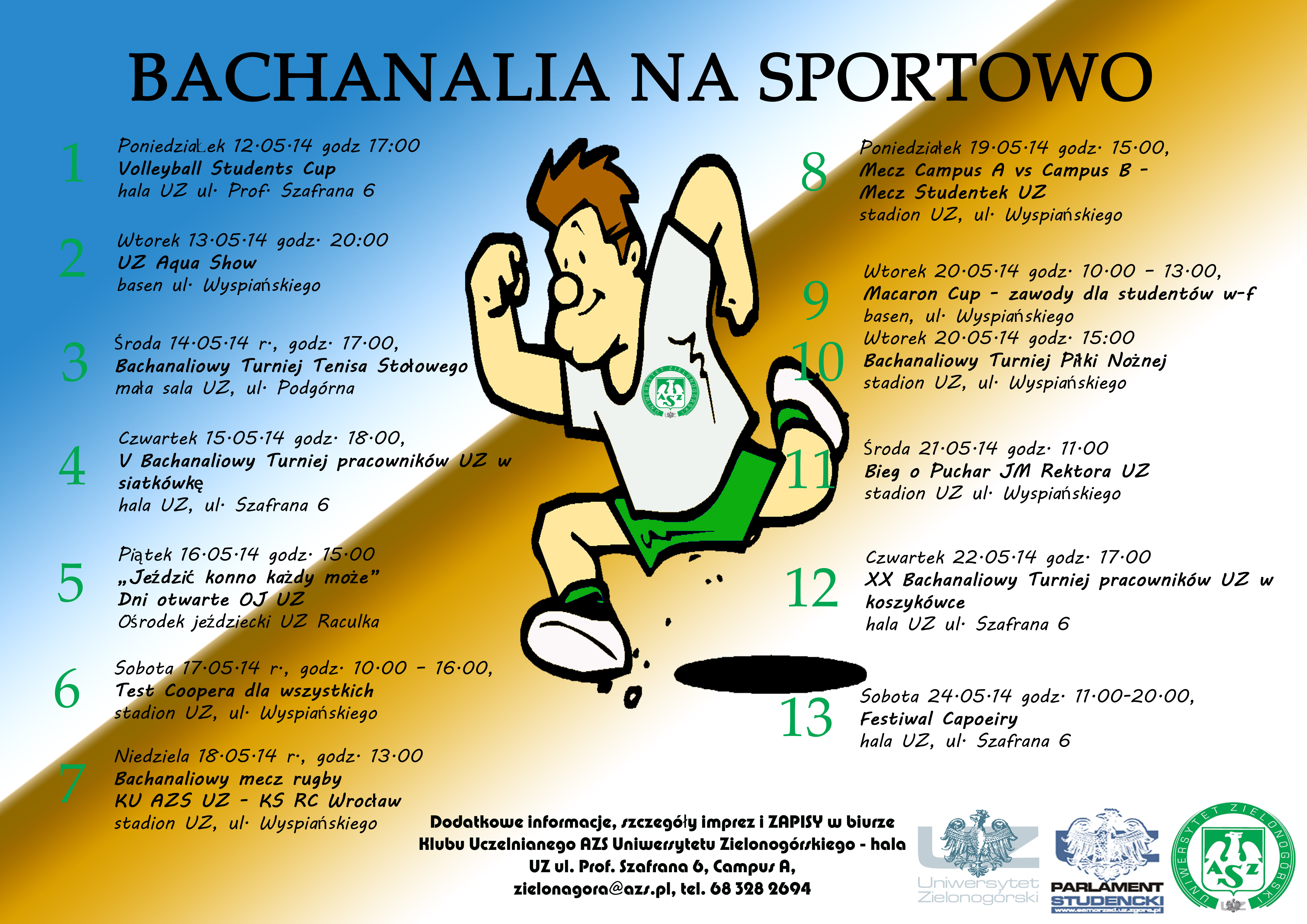 Znamy już wszystkich artystów tegorocznej edycji Bachanaliów! W czwartek 22 maja wystąpią: Kamil Bednarek, donGuralesko, Luxtorpeda, Dj Kostek, Dj Aleks, GRB, Rademenez, zwycięzca Rap Bitwy oraz Bitwy Kampel.