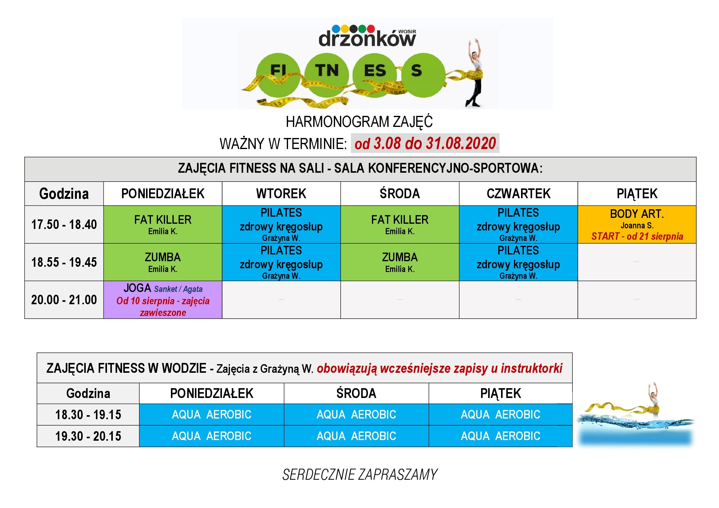 Wakacyjny harmonogram fitness.