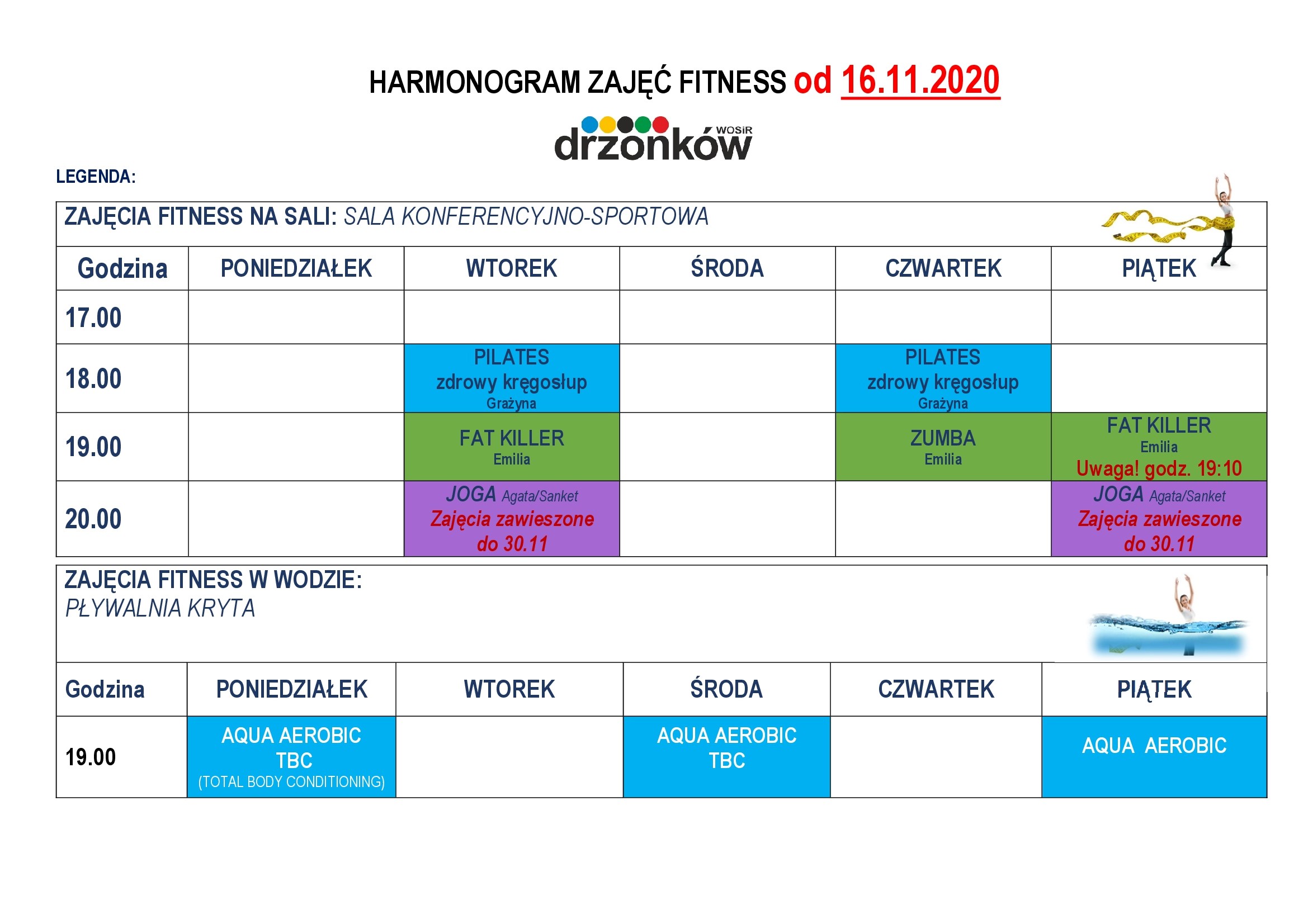 Niezmiennie zapraszamy na zajęcia: Pilates - zdrowy kręgosłup, Pilates Ring, Zumba, Dance Fat Killer, Aqua areobic - prowadzone przez nasze niezastąpione instruktorki!