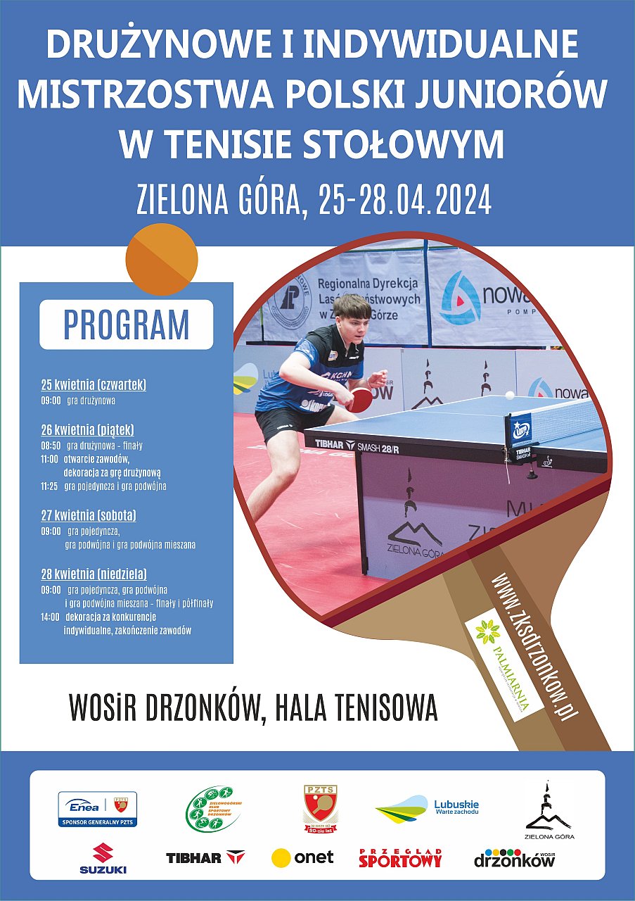 Zapraszamy na indywidualne i drużynowe Mistrzostwa Polski Juniorów w tenisie stołowym.