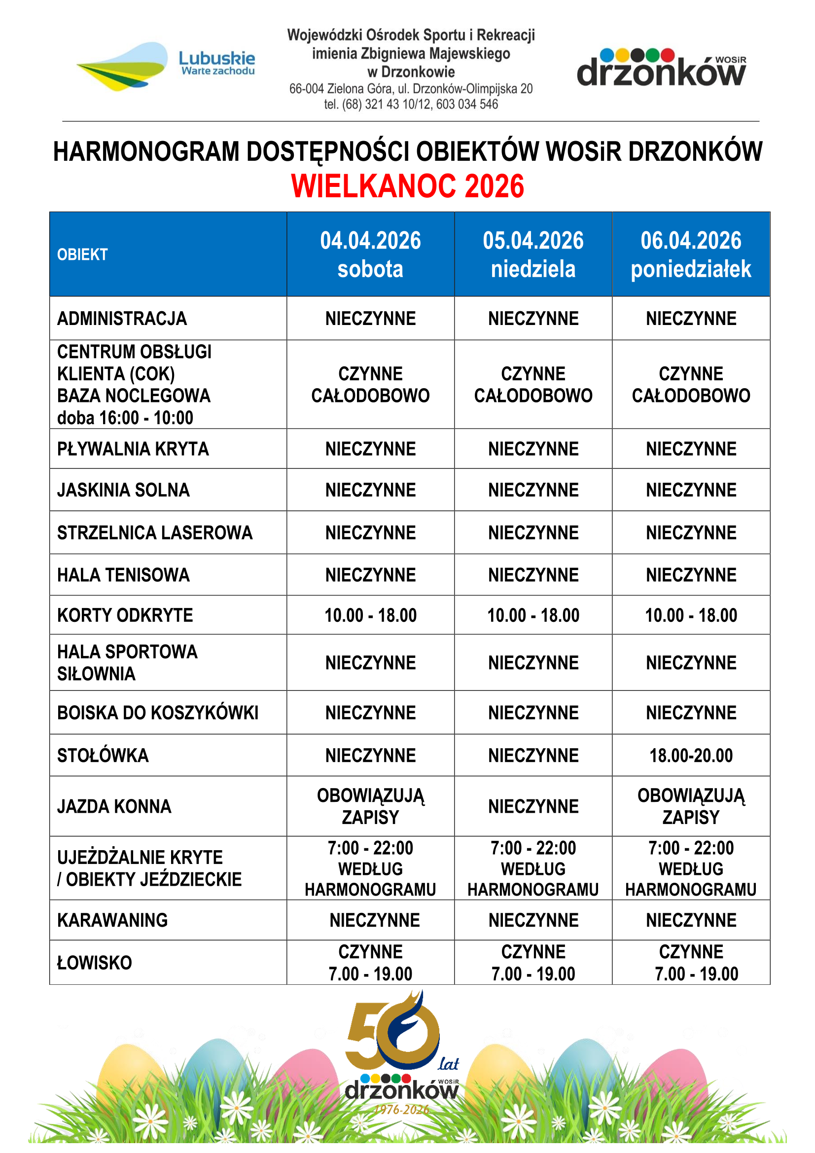 Zobacz, które nasze obiekty będą czynne w okresie Świąt Wielkanocnych...