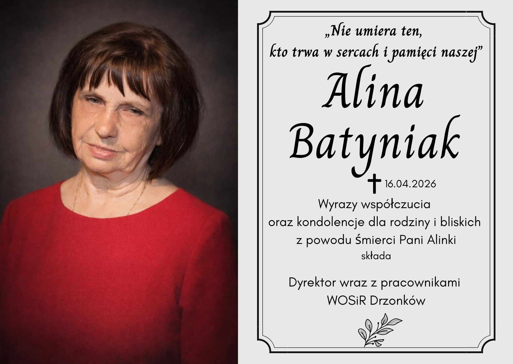Na zawsze pozostanie w naszej pamięci jako osoba serdeczna, życzliwa i oddana swojej pracy.