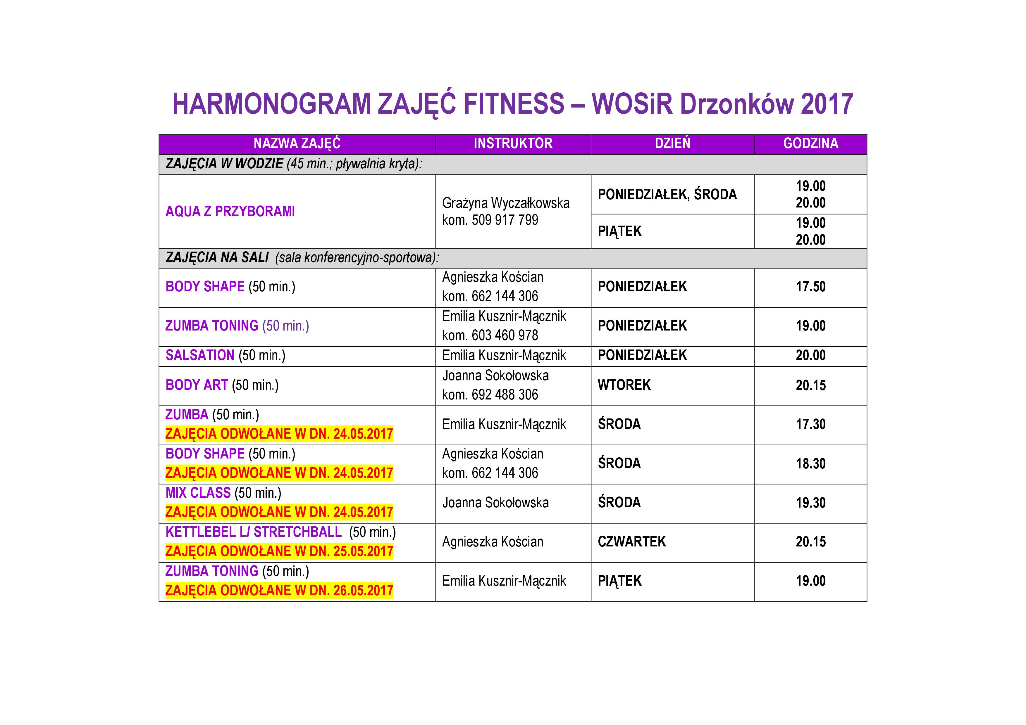 Uprzejmie informujemy, że ze względu na odbywający się na terenie Ośrodka Puchar Świata w Pięcioboju Nowoczesnym zajęcia fitness na sali zostają odwołane w terminie 24-26 maja 2017r.