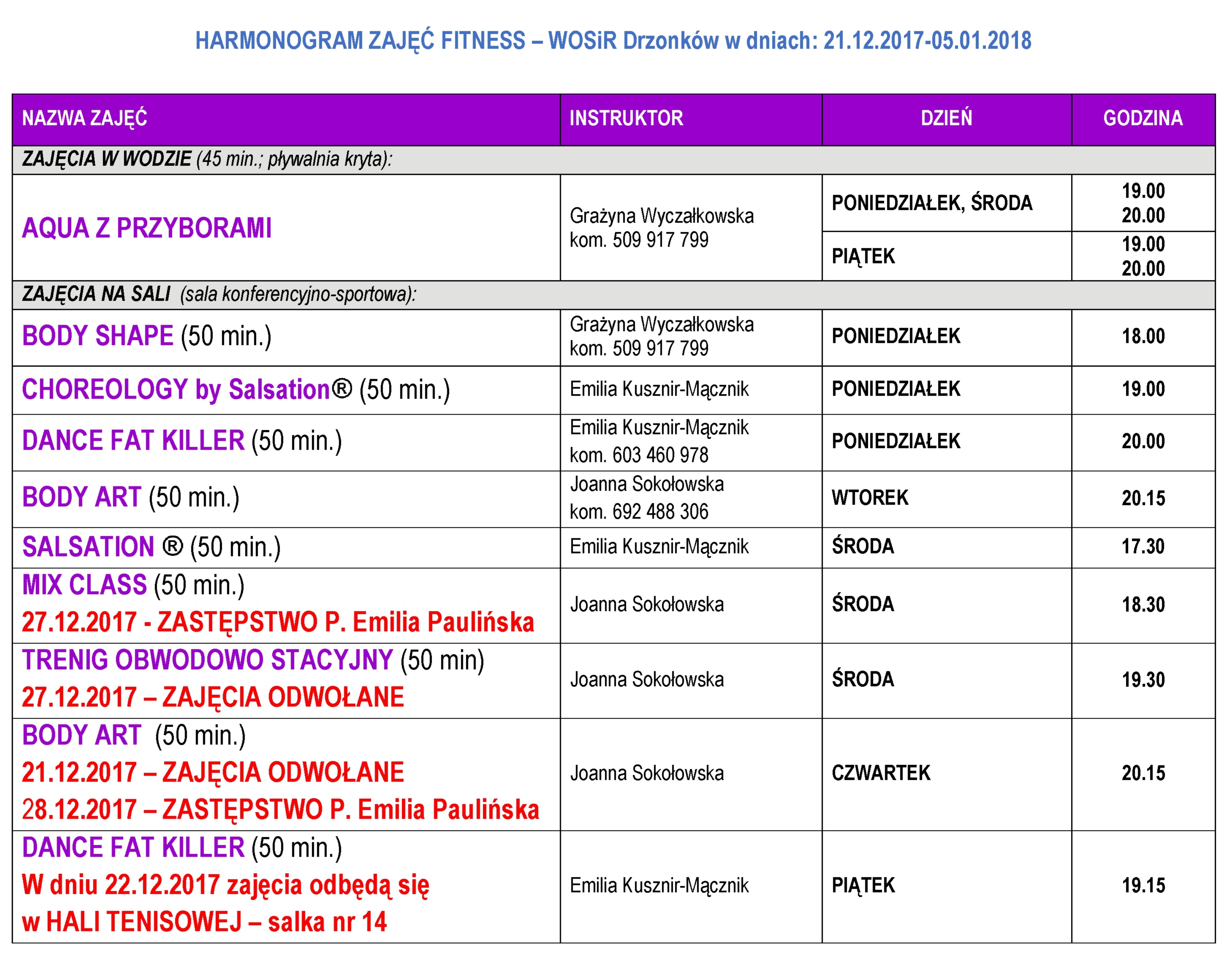 ZOBACZ AKTUALNY HARMONOGRAM FITNESS WOSiR DRZONKÓW W DNIACH 21.12.2017 - 5.01.2018.