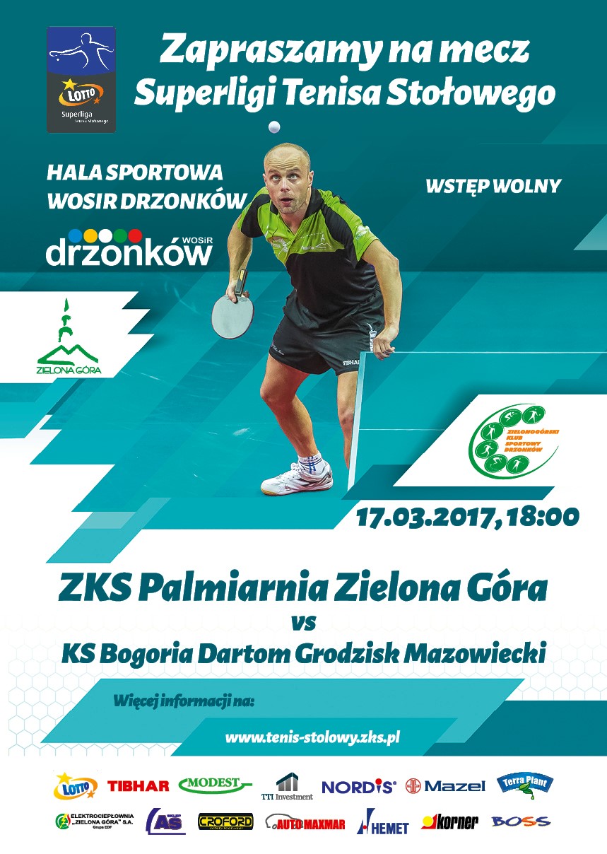 Już w piątek (17 marca 2017r.) o godzinie 18.00 na terenie hali sportowej odbędzie się kolejne spotkanie w Lotto Superlidze. W meczu 15 kolejki zagrają przeciw sobie: ZKS Palmiarnia Zielona Góra i KS Dartom Bogoria Grodzisk Mazowiecki.