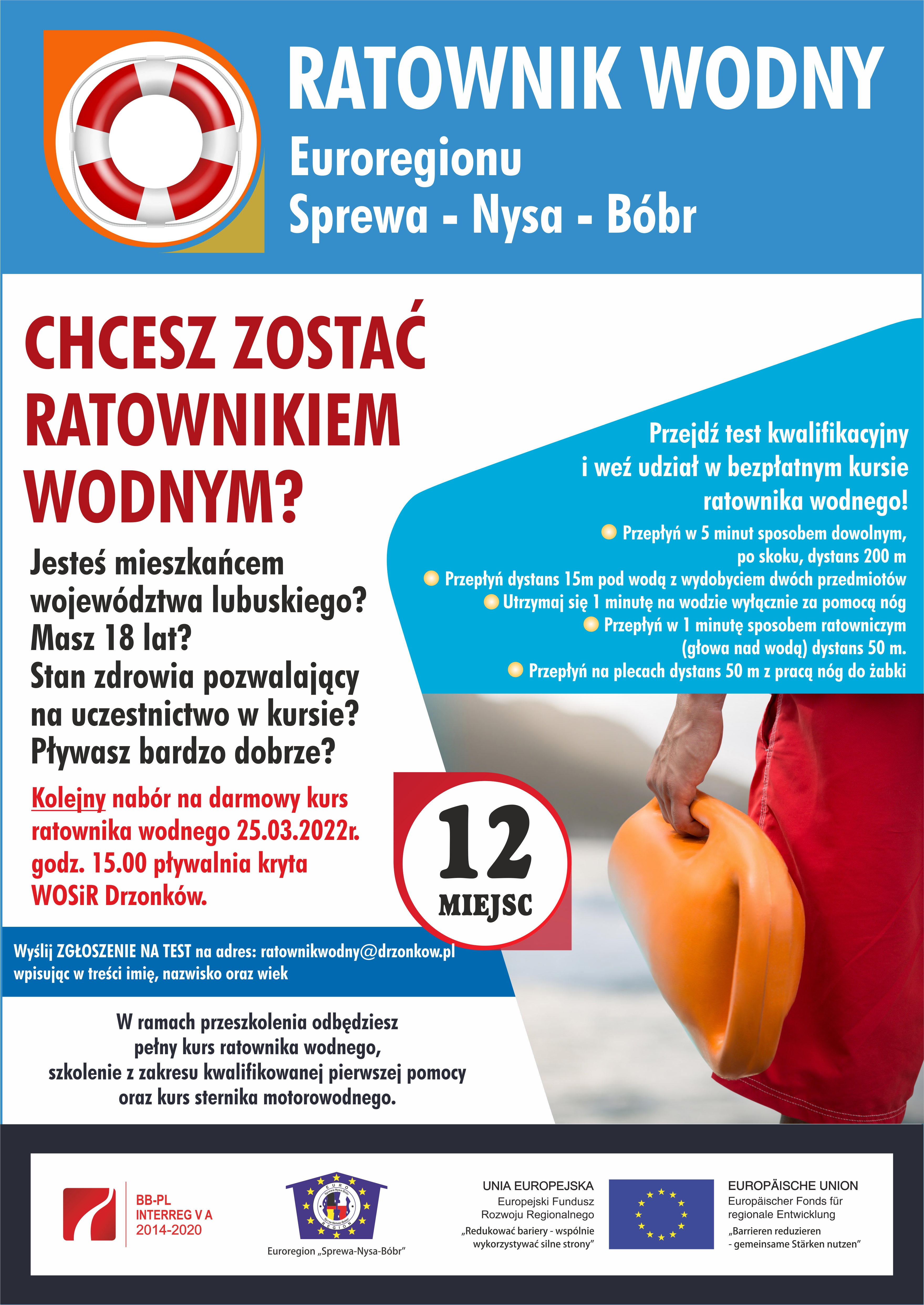 Kolejny nabór na darmowy kurs ratownika wodnego 25.03.2022 r. godz. 15:00 pływalnia kryta WOSiR Drzonków.