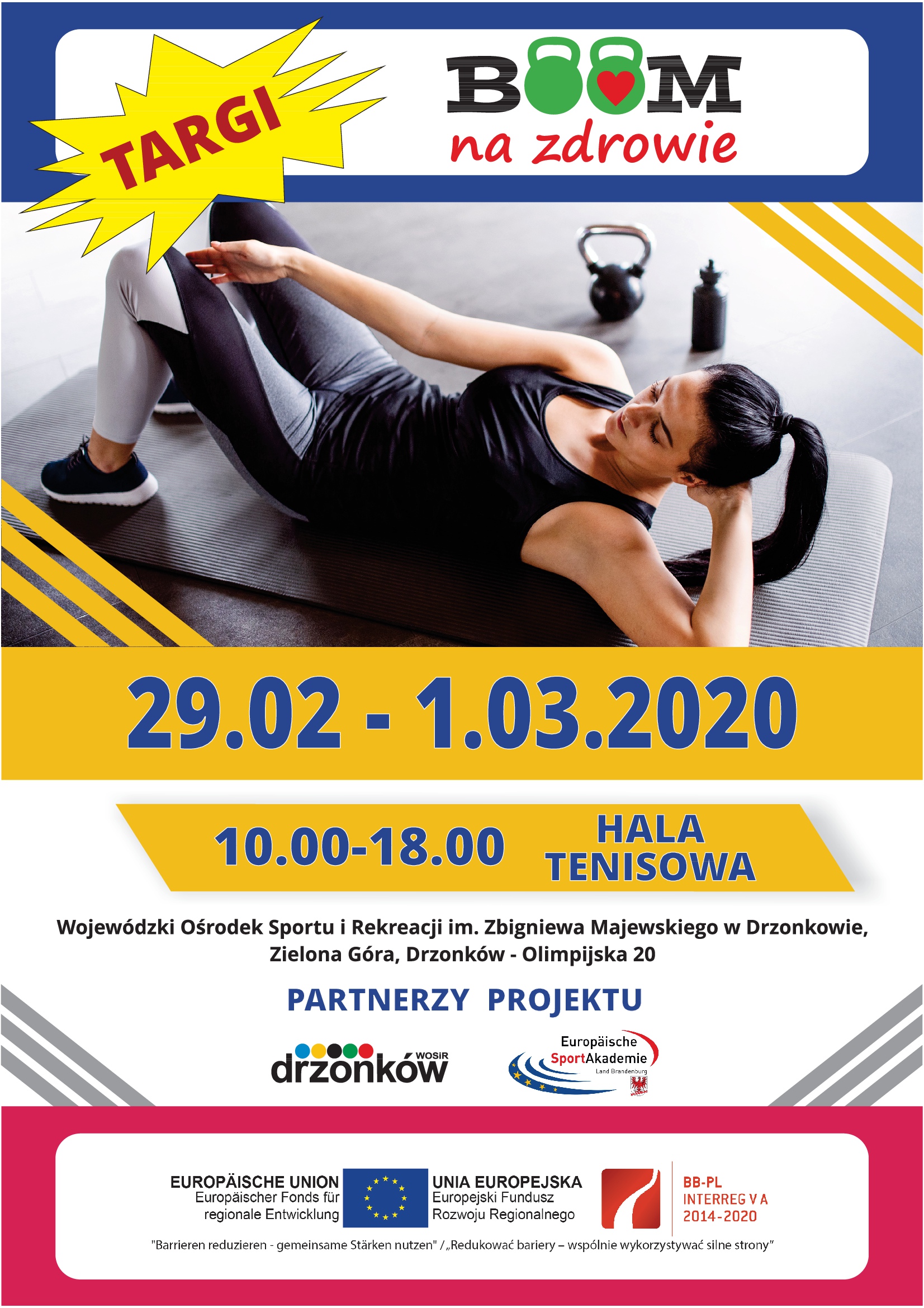 W terminie 29.02.2020 – 01.03.2020 r. na terenie Wojewódzkiego Ośrodka Sportu i Rekreacji im. Zbigniewa Majewskiego w Drzonkowie zorganizowane zostaną Polsko - Niemieckie Targi Boom na Zdrowie.