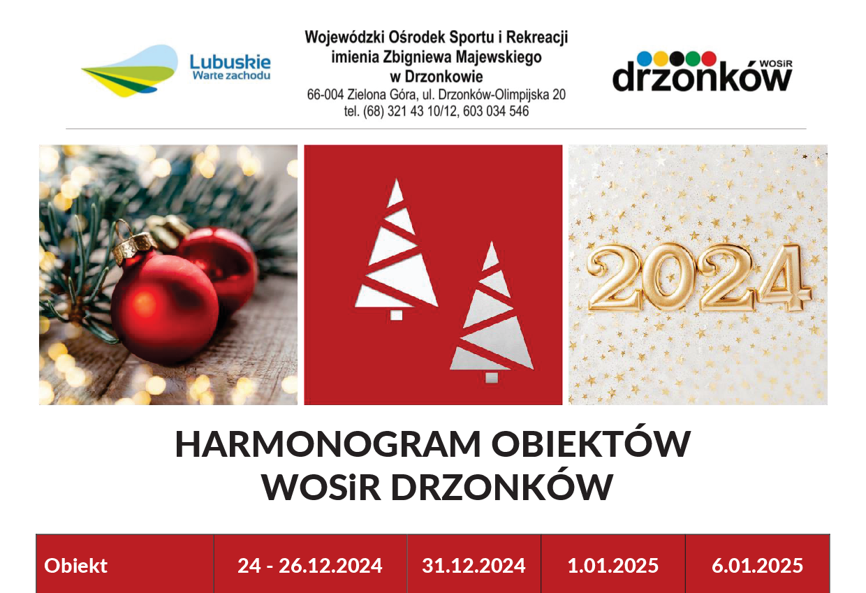 Świąteczny harmonogram obiektów