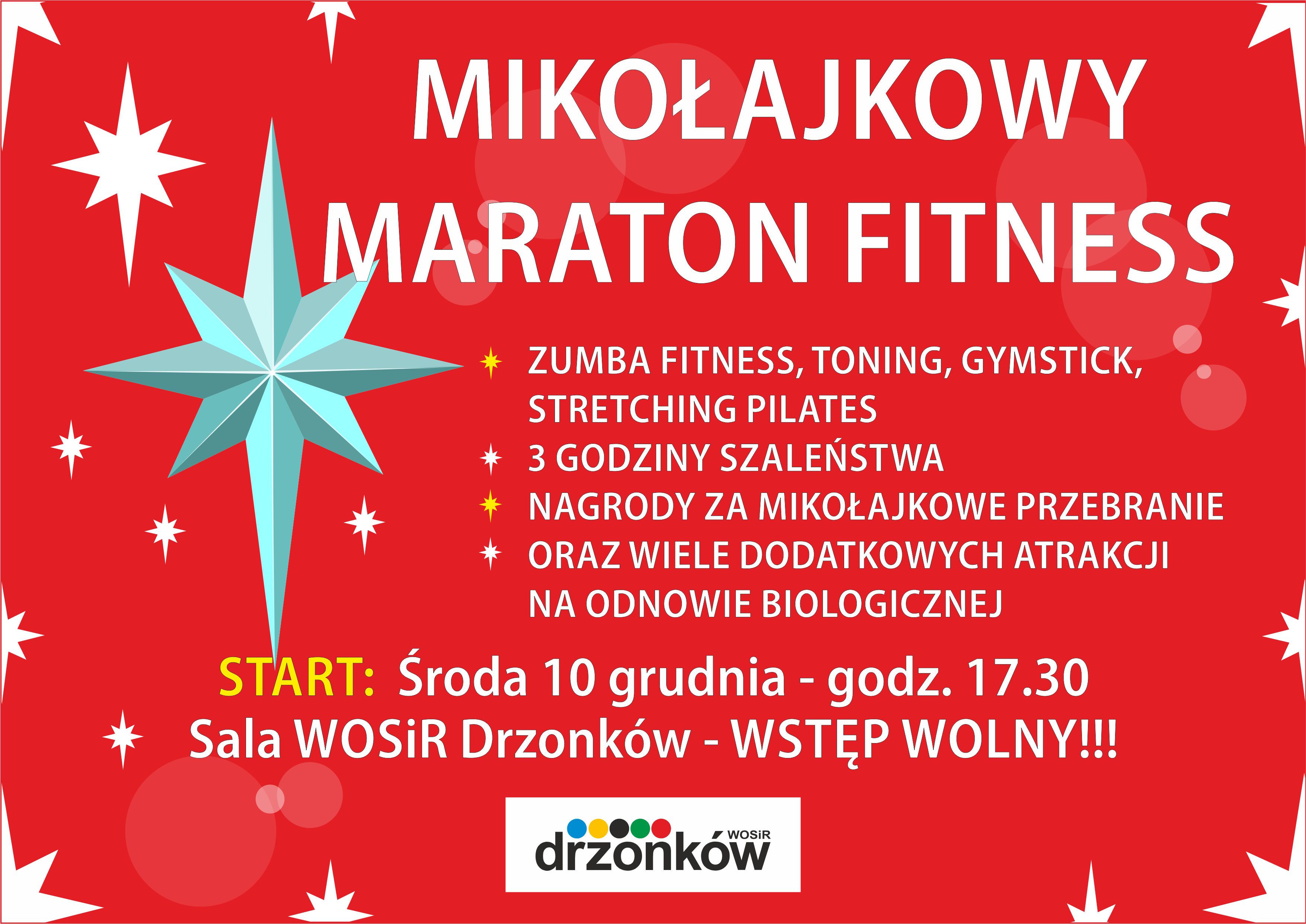 Zapraszamy 10.12.2014 r., na Mikołajkowy Mmaraton fitness (zajęcia bezpłatne) – sala konferencyjno-sportowa (budynek pływalni krytej) - wymagany element związany z Mikołajem.