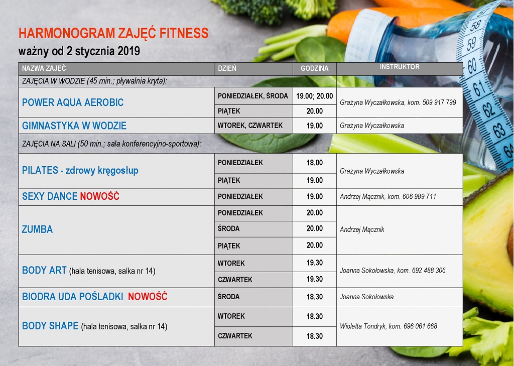Poniżej harmonogram zajęć obowiązujący od 2 stycznia 2019r.